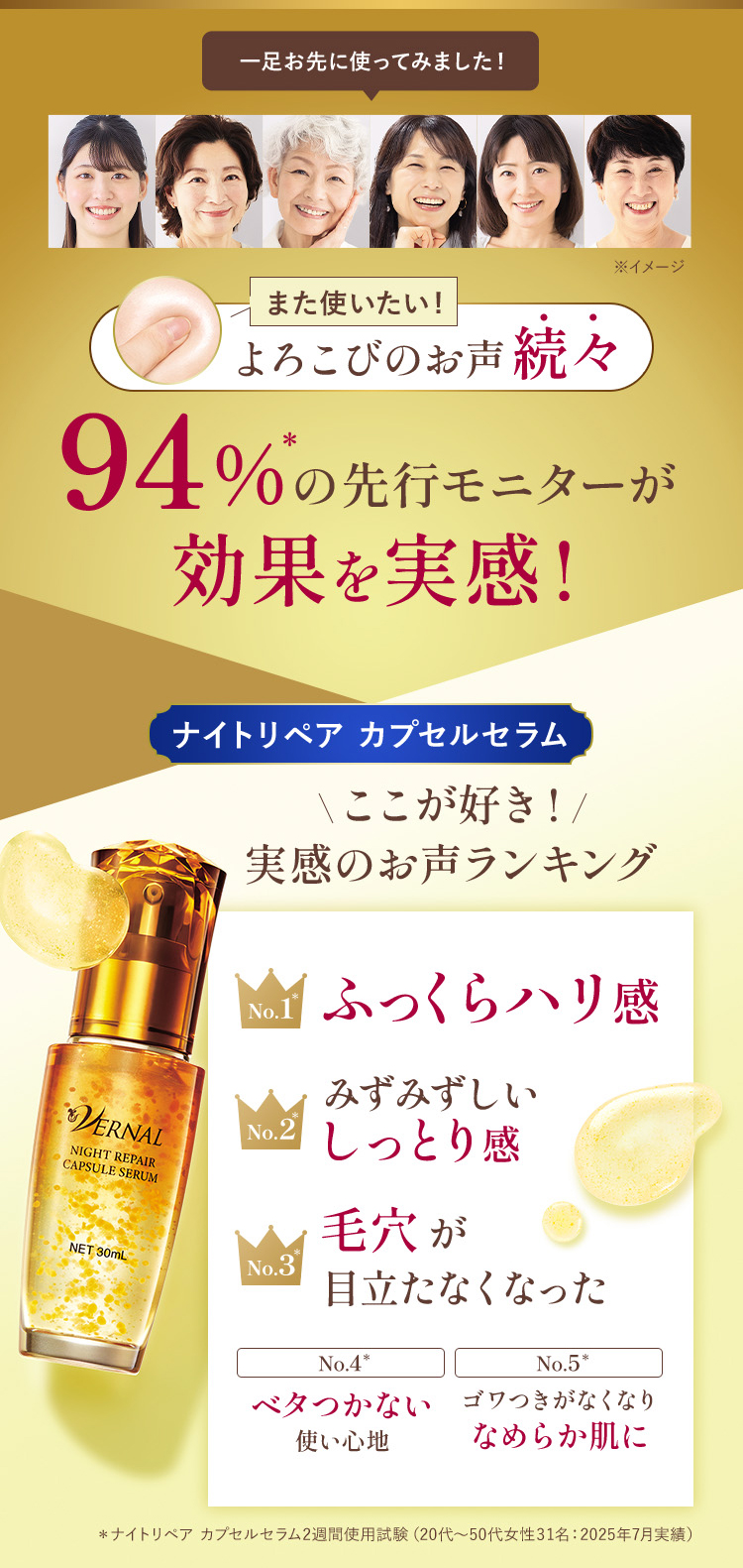 高機能セラムの中に集中補修カプセルを閉じ込めた、『夜用美容液』が誕生しました。
