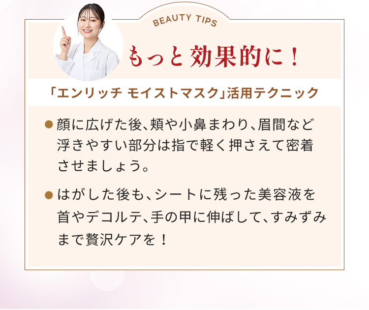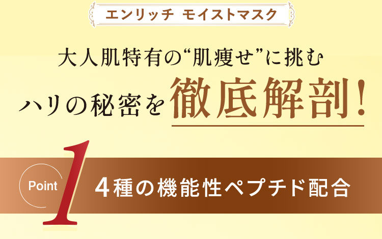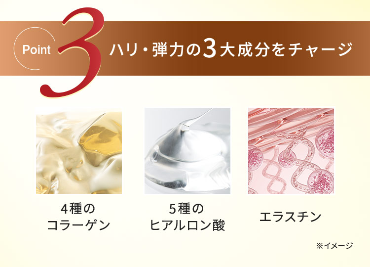 4種の機能性ペプチドが肌の表面と内側*1の両方にアプローチして、パンッと弾けるようなハリ肌を叶えます。