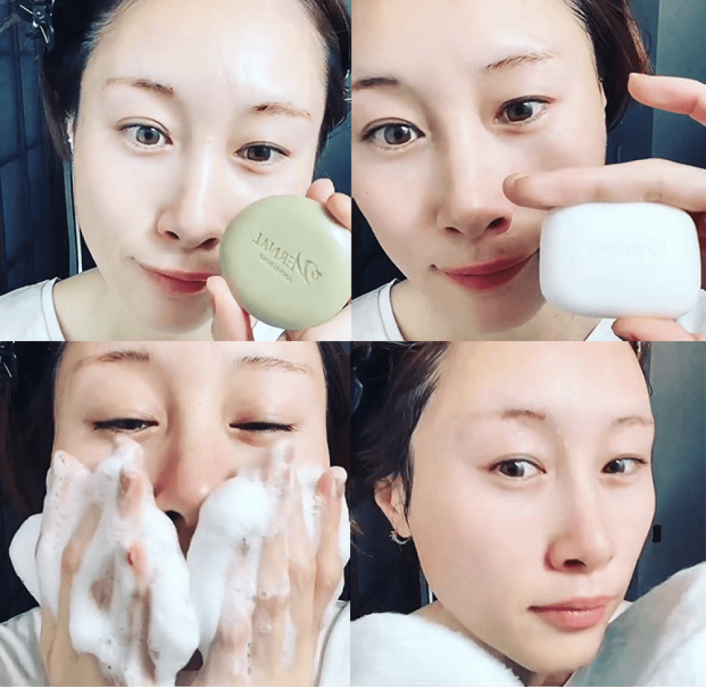 「2種類」のせっけんを使って洗顔することが特徴的。