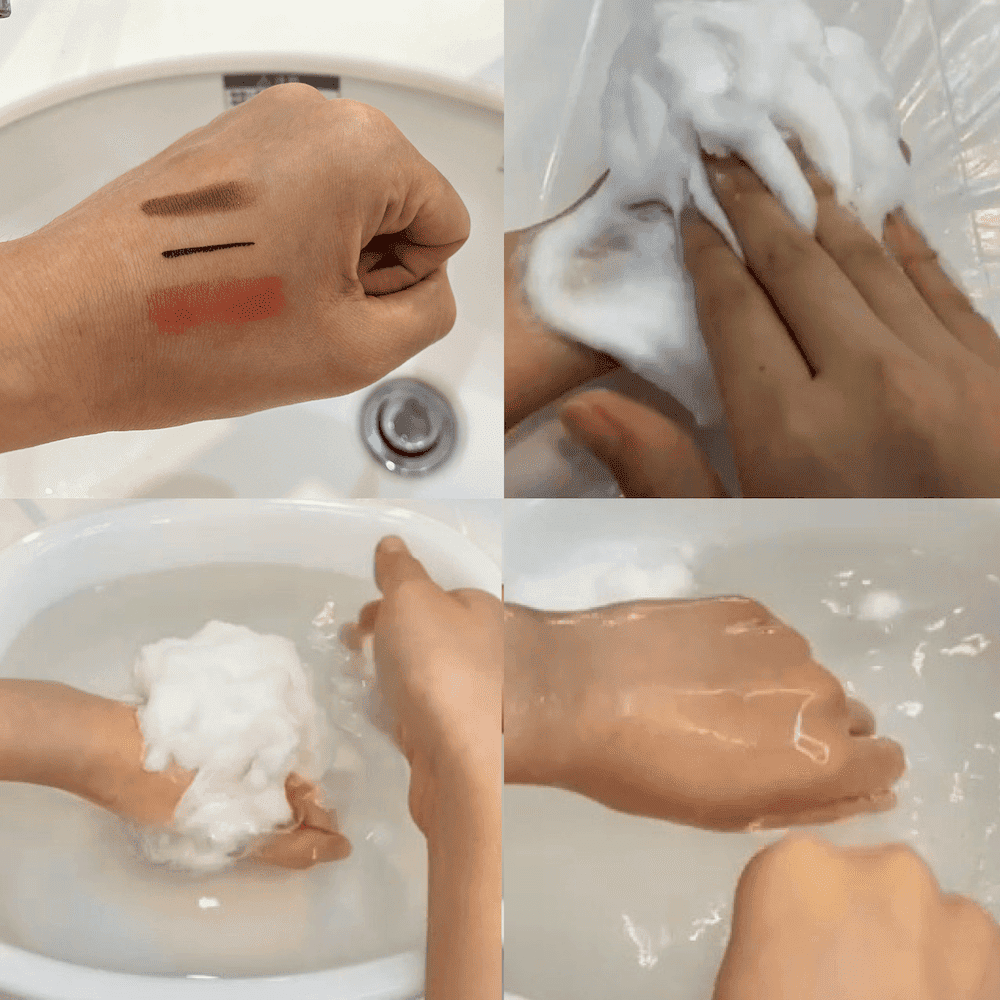 さらに「せっけんで落ちるの?」と気になる濃いメイクの汚れもしっかり吸収!