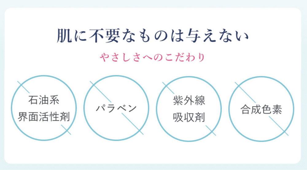 の4点全部、石油系界面活性剤、パラベン、紫外線吸収剤、合成色素などの添加物は不使用。