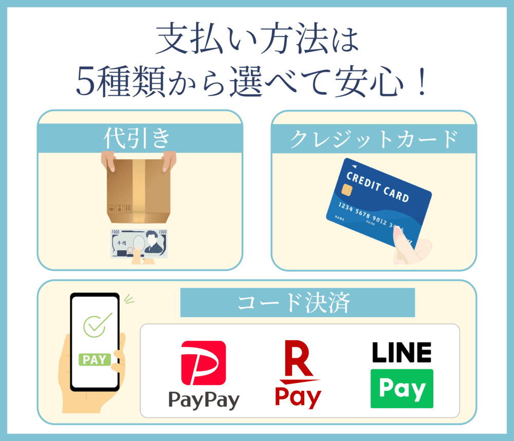 お支払は、着払い(代引き)とクレジットカード払い、コード決済が選択可能です。