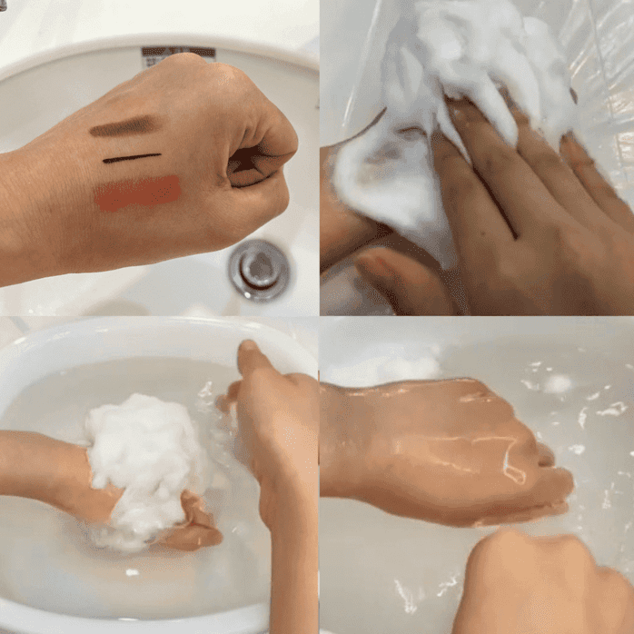 さらに「せっけんで落ちるの?」と気になる濃いメイクの汚れもしっかり吸収!