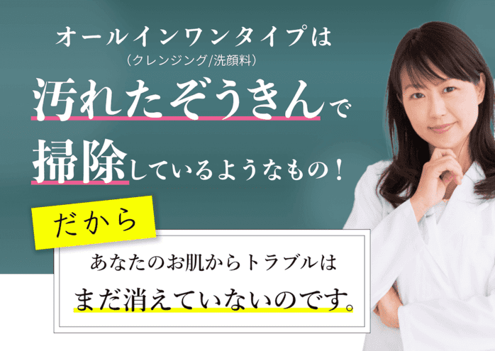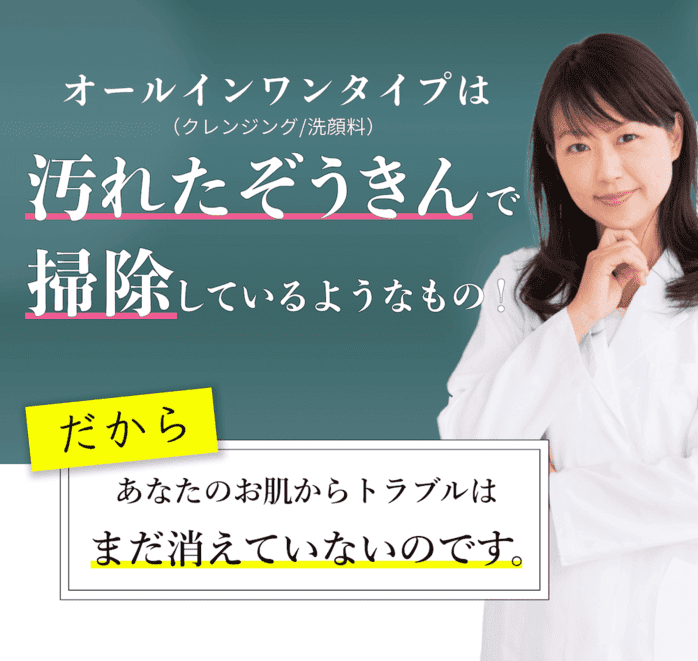 2種類のせっけんによるW洗顔の必要性を唱えています。
