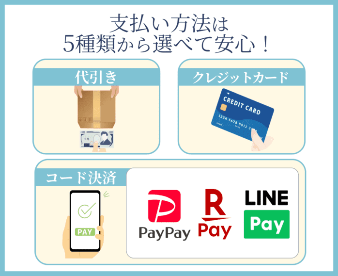 お支払は、着払い(代引き)とクレジットカード払い、コード決済が選択可能です。
